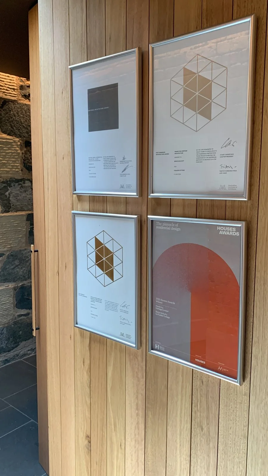 On a return trip to Tasmania, Sopan and I met with Shamus and, over a cup of coffee at the café near their North Hobart office, we picked up the awards, which now hang proudly in the entrance foyer to Fusilier Cottage.